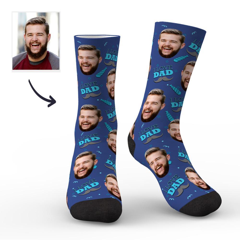 75% OFFCustom Photo Socks,I Love Dad Face Blue Socks -
