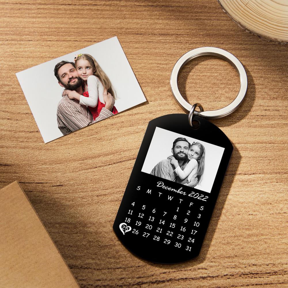 46% OFFPersonalised Custom Photo Engraved Calendar Collage Photo Painting Keyring Father's Day Gift -
