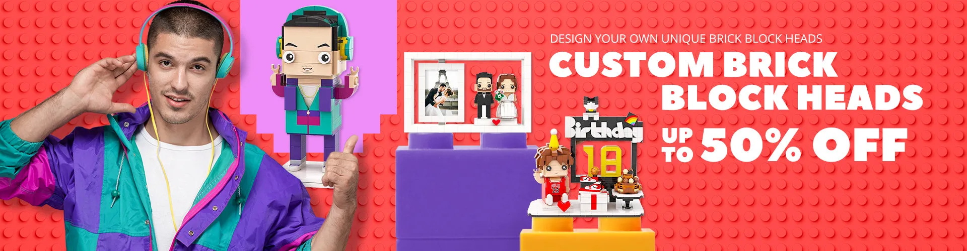 50% OFFCustomized Head Boy Figures Small Particle Block Toy Customizable Brick Art Gifts -