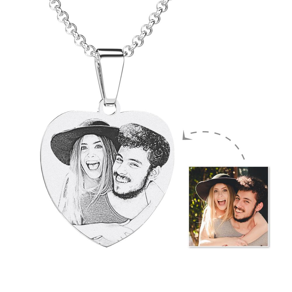 60% OFFWomen's Heart Photo Engraved Tag Necklace with Engraving Stainless Steel (Black and White)BUY 2 GET 1 FREE -
