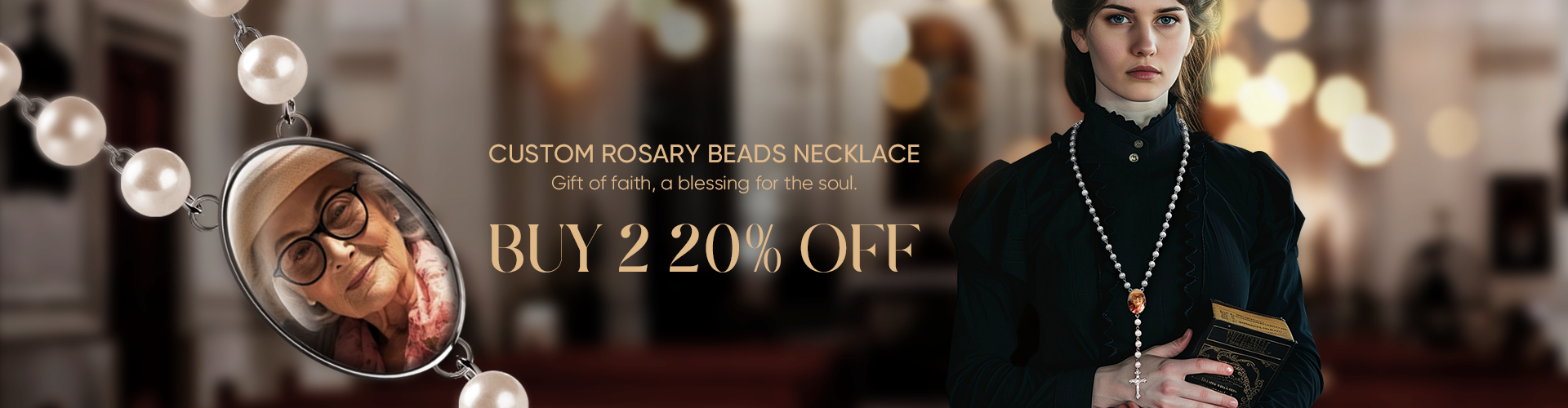33% OFFCustom Rosary Beads Cross Necklace Personalised Vintage Light Wood Beads Handwoven Necklace with Photo -