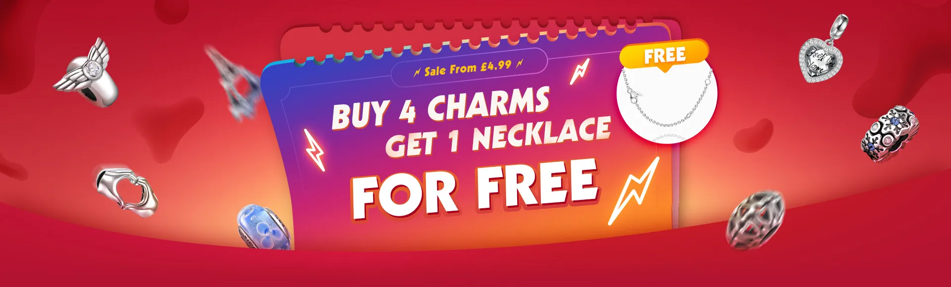 Buy four or more charms in this section, the £4.99 necklace will be added to cart automatically for free.