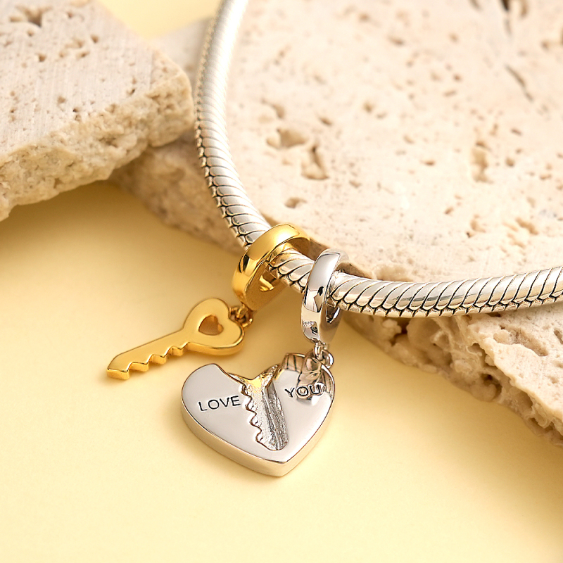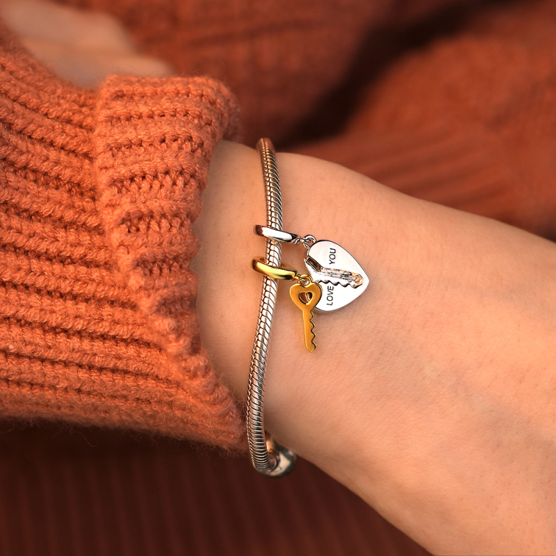 2pc Love You Heart Key Matching Couples Engraving Charm Bracelets or Necklaces