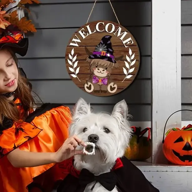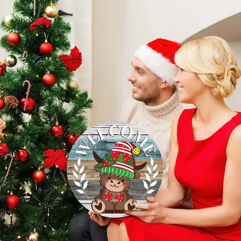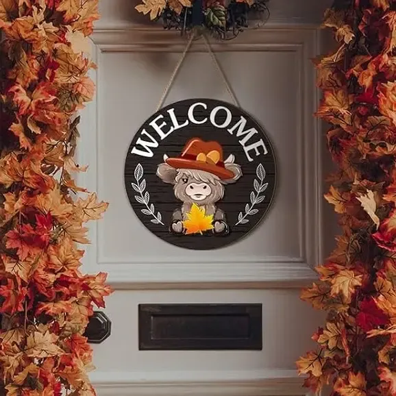 Interchangeable Highland Cow Welcome Sign for Holiday Seasonal