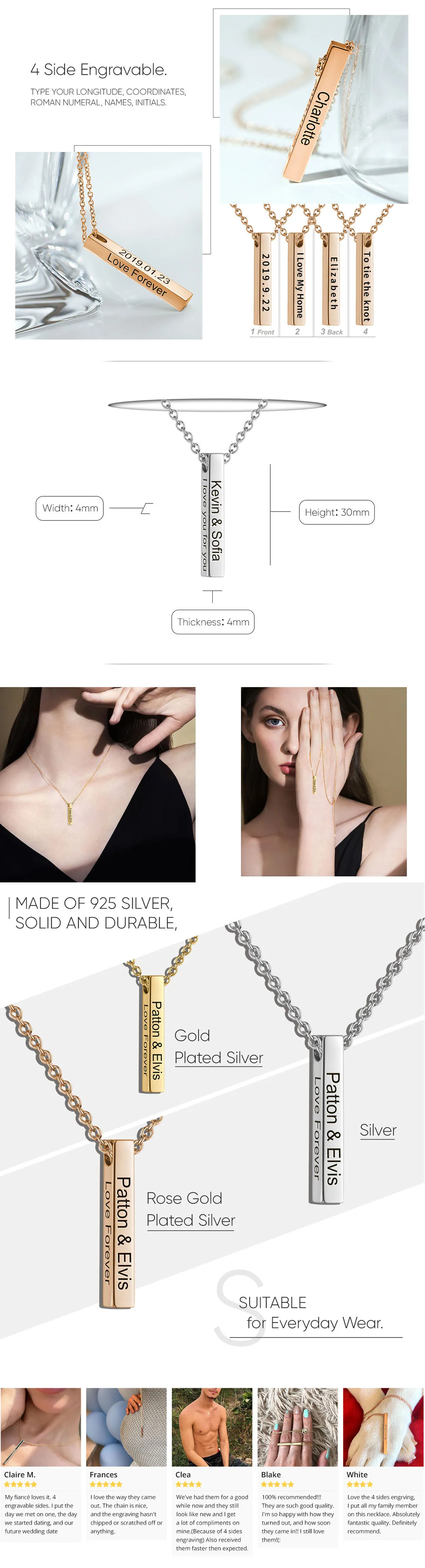 Add something extra special to your Jewellery box with Soufeel engravable necklaces. There are a plethora of gorgeous designs that can be customized with a name, two names, or even inspirational words that you love. Soufeel provides affordable engravable Jewellery that won’t break the bank. In addition, these pieces make for very thoughtful and appreciated gifts for friends and family. Give them to someone celebrating a birthday, graduation, baby shower, or anniversary. The finishes are beautifully polished so that the shine that comes off of them is very intense. Make your own heartfelt gift with this Personalised bar necklace. Each side of this bar can be engraved with your choice. Crafted with high-quality sterling silver chain and solid pewter bar charm. This would make a great gift for anyone, man or woman. Typically given as a birthday present, anniversary gift, or Christmas gift but you certainly don't need a holiday to celebrate the love of others that are important in your life - make everyday special with a Personalised piece.