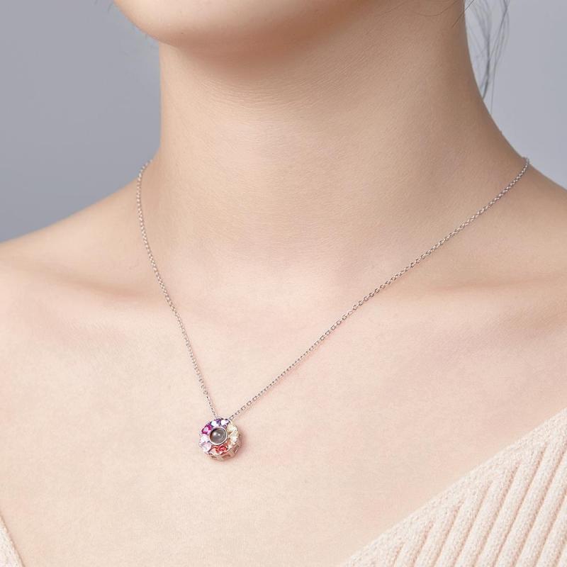 925 Sterling Silver Projection Photo Love Necklace,Custom Photo Necklace,Personalised Projective Pendant,Mother's Day Gift,Gift for HerThis photo necklace serve as a great gift for wife, grandma, lovers, spouse, gift for girlfriend, gift for friend and gift for her.The photo in the projection necklace can be seen by either looking at the glass part of your necklace through a phone camera and point a flashlight from your phone or flash light to the glass part and let the photo project to the wall.