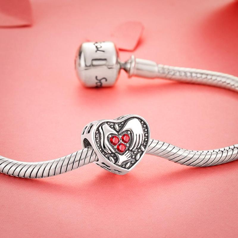 A Loving Family Heart-shaped Silver Crystal Charm