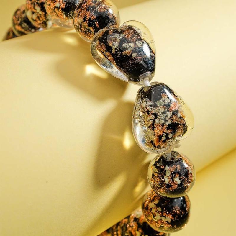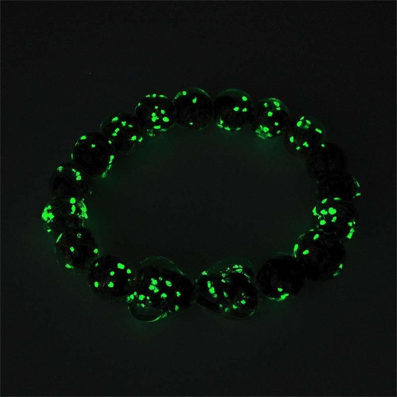 Black Heart-to-Heart Firefly Glass Stretch Beaded Bracelet Glow in the Dark Luminous Bracelet