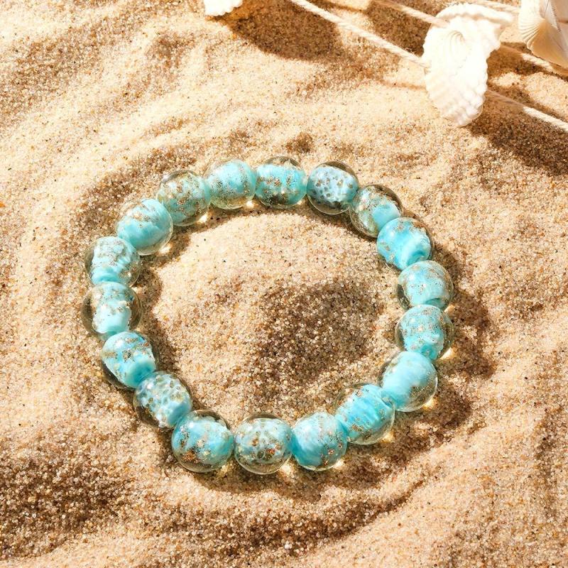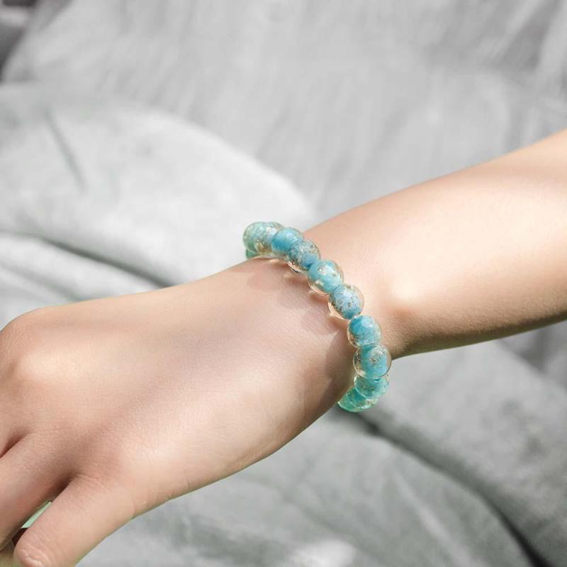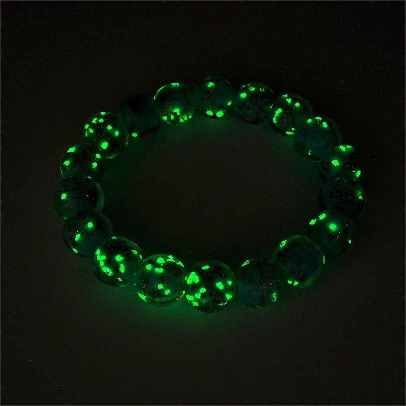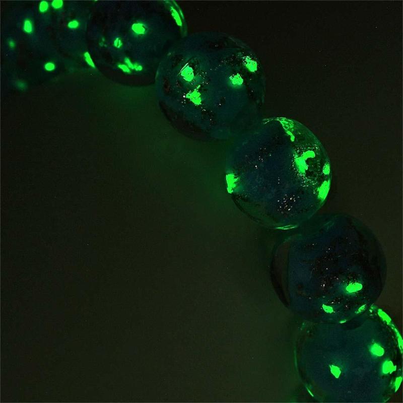 Blue-Green Firefly Glass Stretch Beaded Bracelet Glow in the Dark Luminous Bracelet
