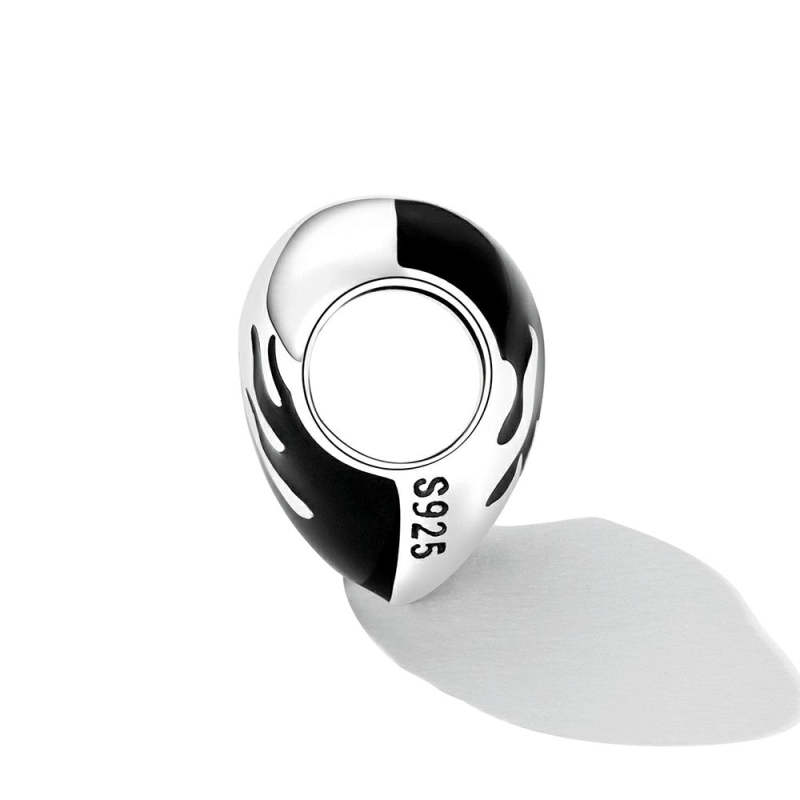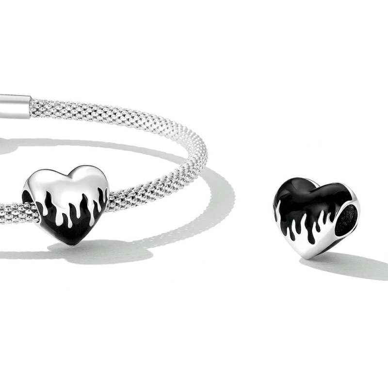Burning Hearts Enamel Charm Silver