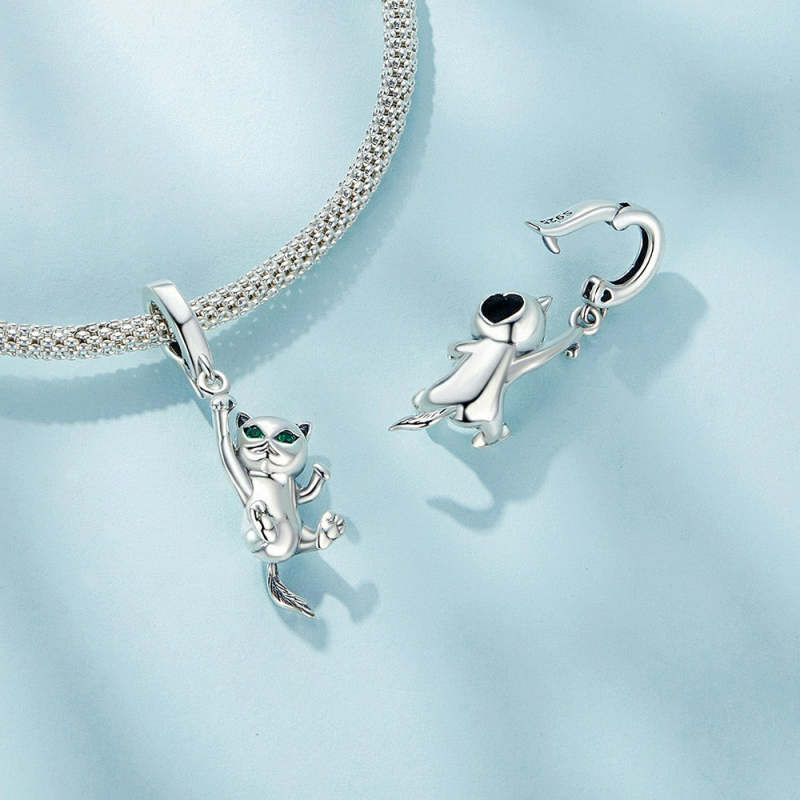 Cat Opening and Closing Buckle Dangle Charm Silver