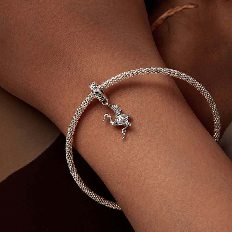 Crane Dangle Charm Silver