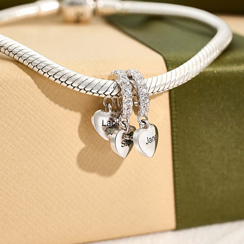 Custom Birthstone with Personalised Names Charm Heart Wings Gifts for Mom