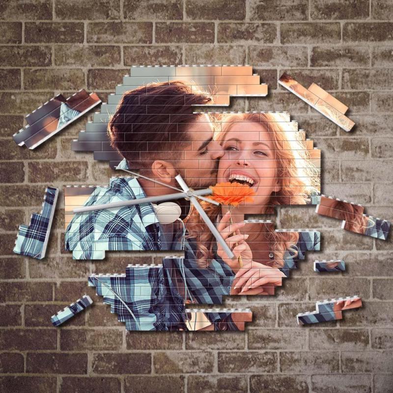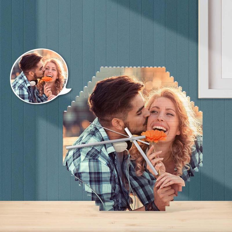 Custom Building Blocks Wall Clock Personalised Puzzle Custom Photo Brick Clock Couple Gift