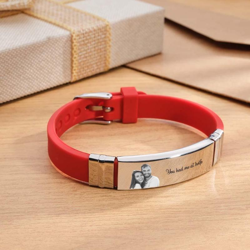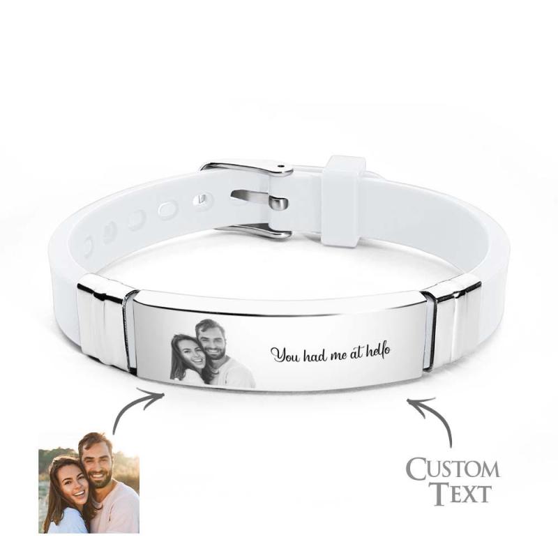 Custom Colorless Photo Engraved Bracelets Sweet Couple Gifts