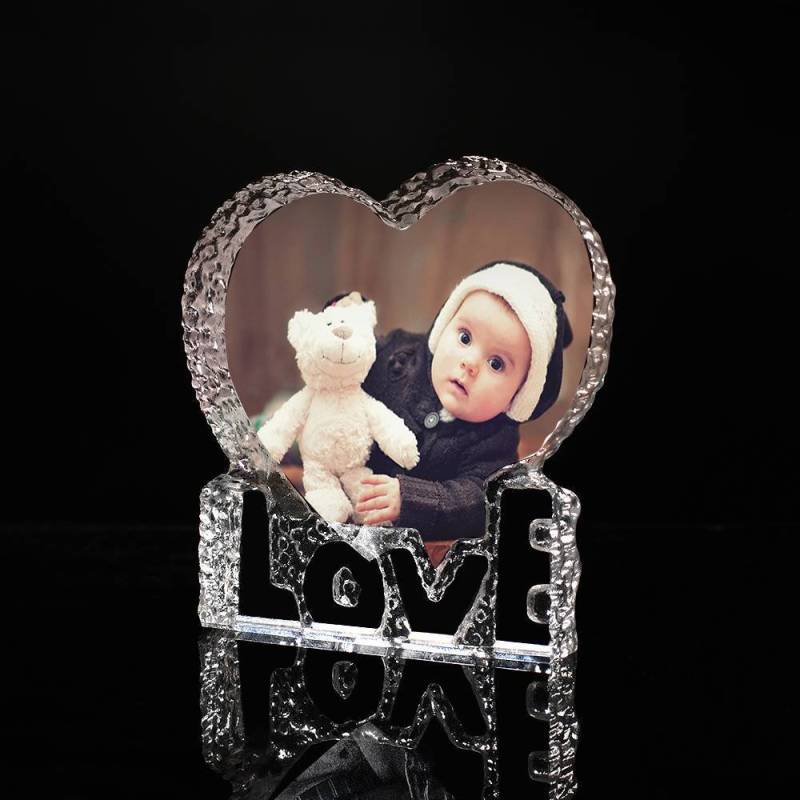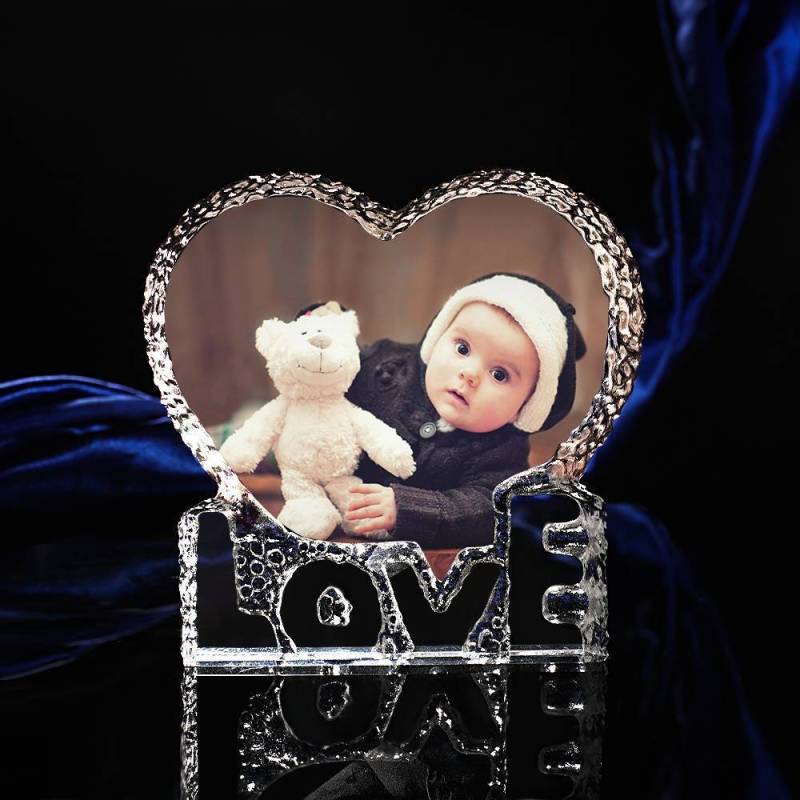 Personalize your home decor with framed memories! Display pictures of loved ones and cherished moments in stylish frames. Collage or single, rectangular or oval, there is huge choice to photo frame your home. Have the first anniversary and birthday celebrations enclosed in one of our photo frames or crystal photo frames. These photo frames are an ideal gift for everyone and any occasion Birthdays, weddings, anniversaries, remembrance and more. Unusual, unique, interesting and extraordinary, it could be a great decoration. Could also be a great and memorable gift. This simple, but meaningful Photo Frame is unique and Personalised, which makes it a perfect gift for a Wedding, Anniversary, Valentine's Day Gifts Idea, or as an everyday gift for your loved one. Custom Crystal Photo Frame Heart-shaped with Love Decoration Baby's Gift 145mm.
