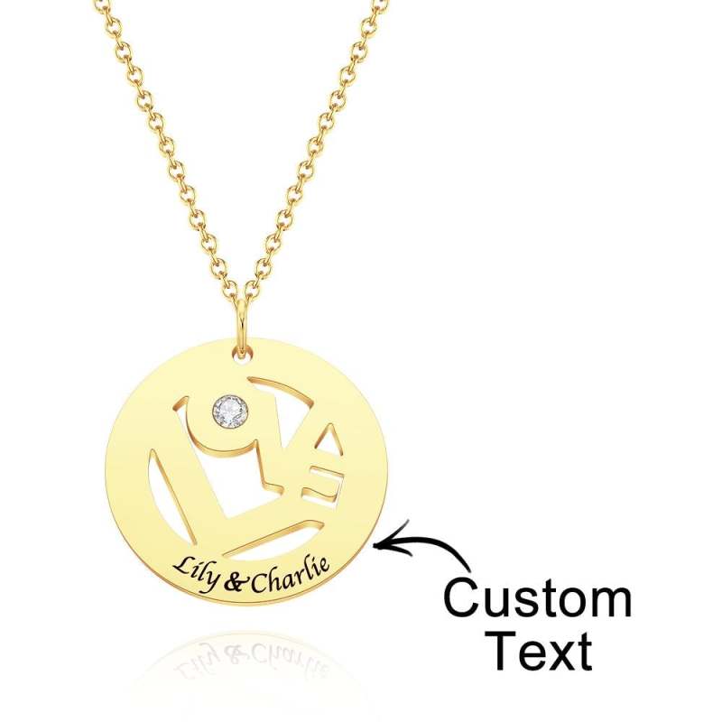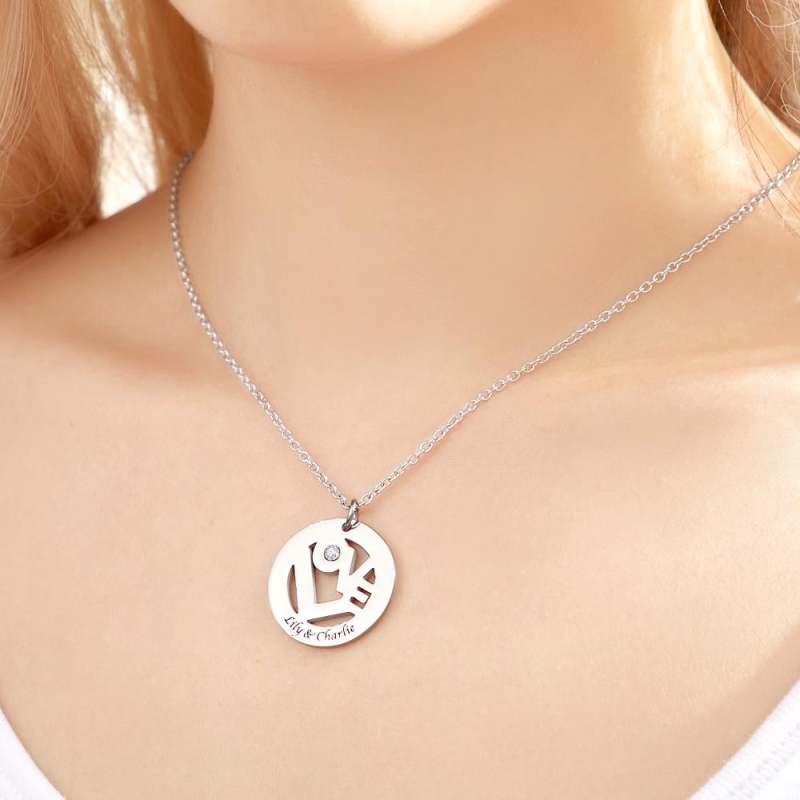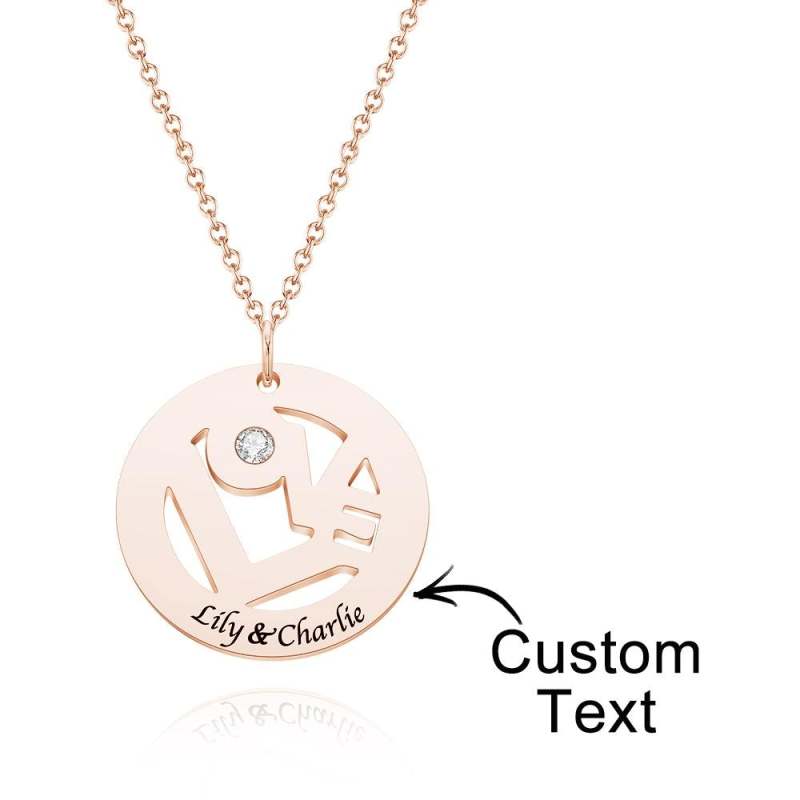 Custom Engraved Birthstone Necklace "LOVE" Round Hollow Unique Gifts