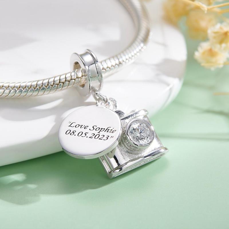 Custom Engraved Charm Diamond Camera Fashion Gift