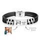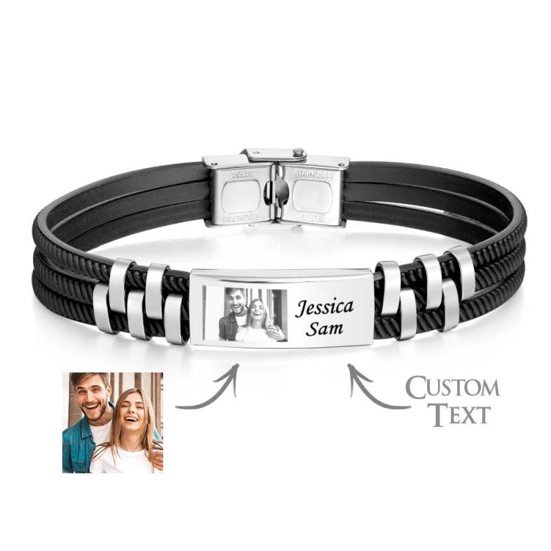 Custom Engraved Leather and Steel Men's Bracelet with Personalised Photo and Names Unique Gift for Him!