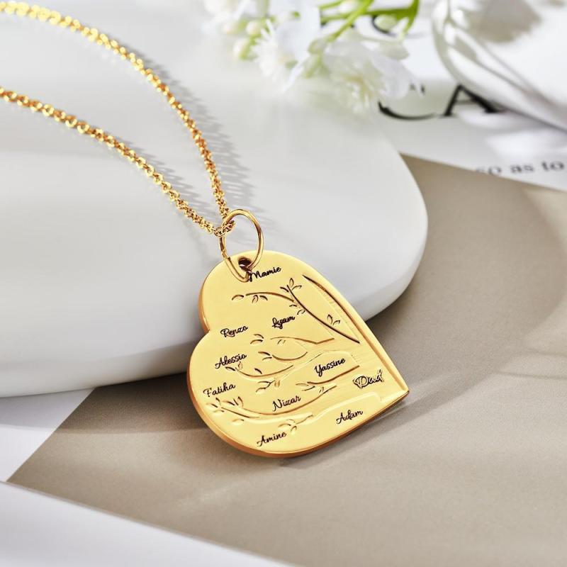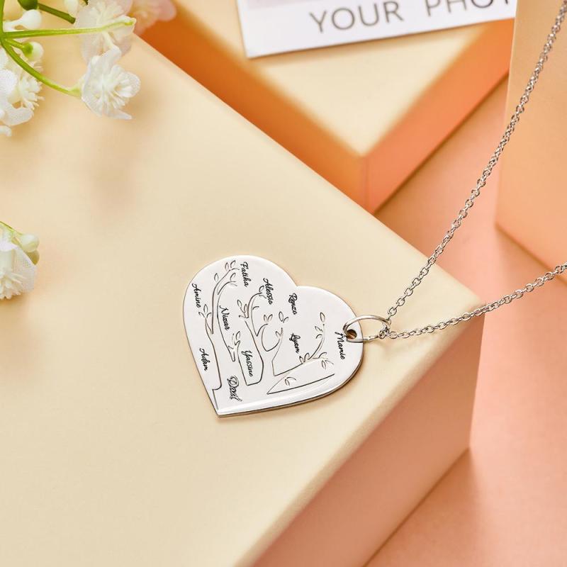 Custom Engraved Necklace Heart Shaped Family Tree Pendant