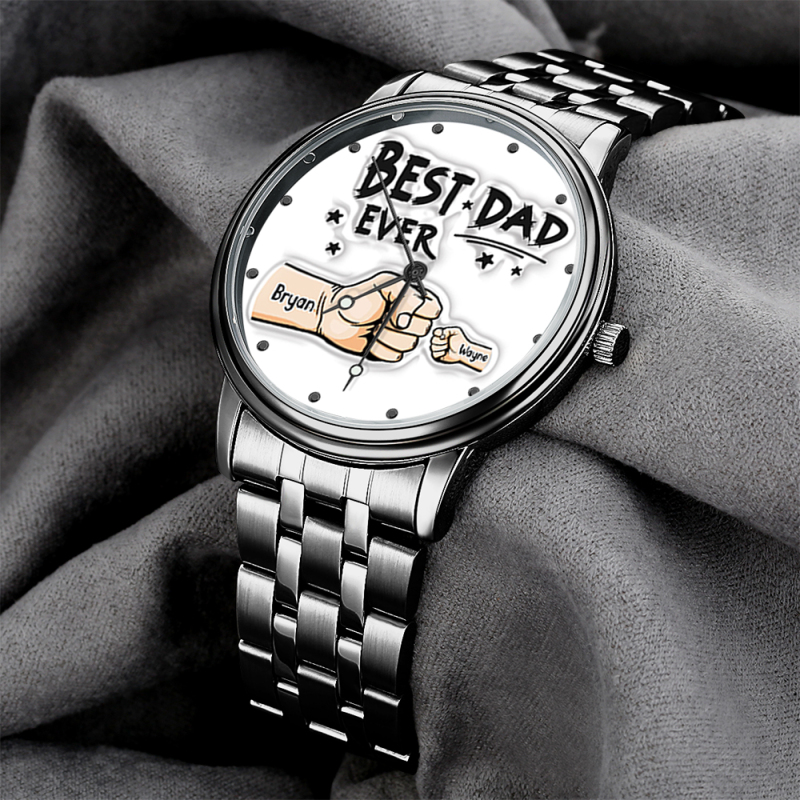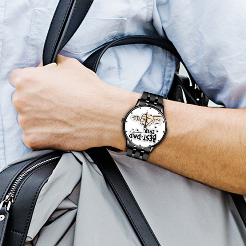 Custom Engraved Watch Men's Black Alloy Watch Holding Hands Bracelet Father's Day Gift for Dad