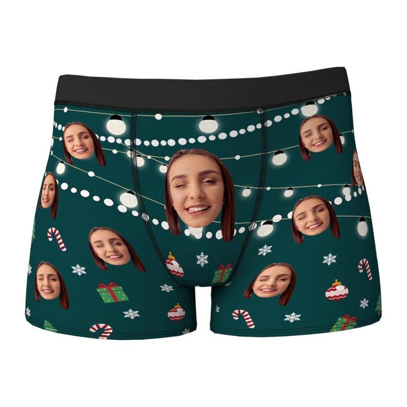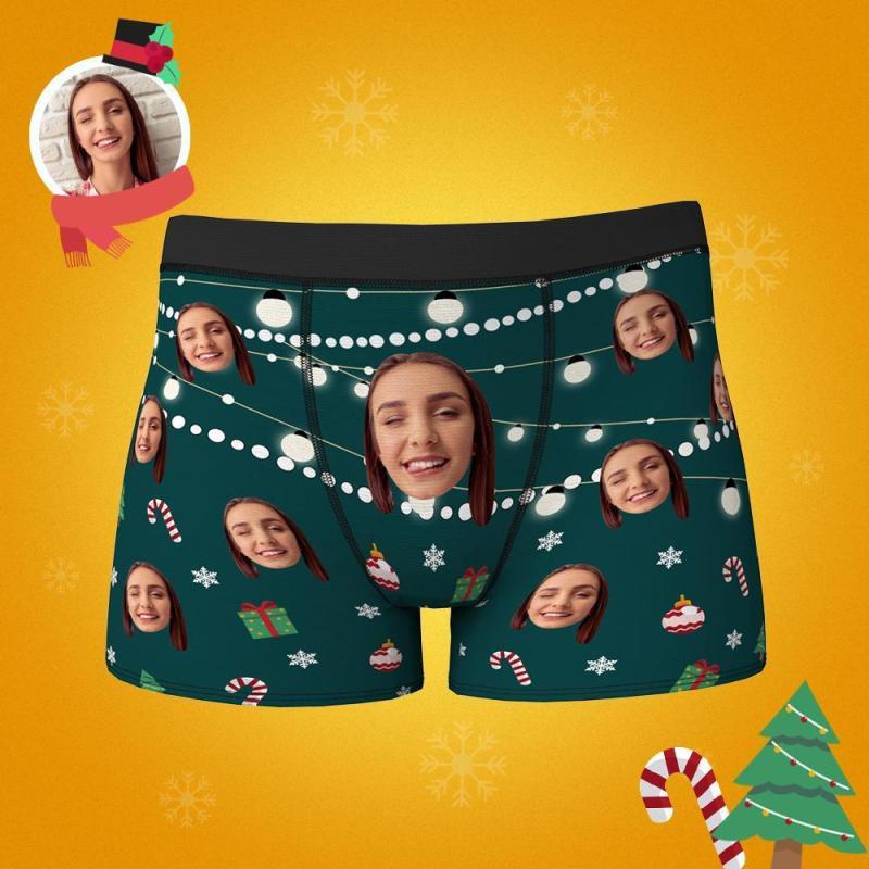 Custom Face Boxers Shorts Christmas Lights Personalised Photo Underwear Christmas Gift For Men
