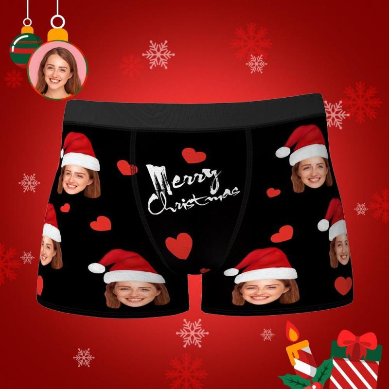 Custom Face Boxers Shorts Personalised Photo Underwear Christmas Gift For Men Merry Christmas