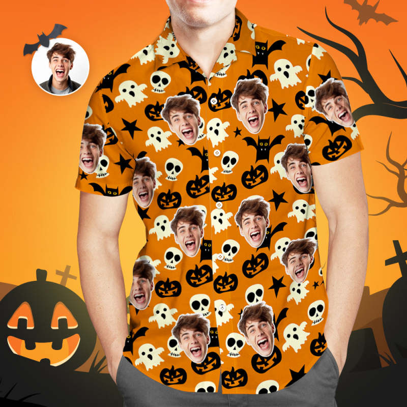 Custom Face Hawaiian Shirt Men's Happy Howl-O-Ween Shirts Halloween Gifts