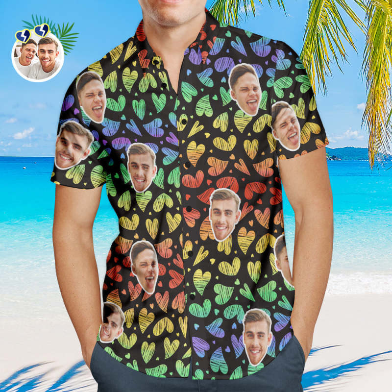 Custom Face Men Hawaiian Shirts Personalised LGBTQ Gay Pride Shirt - Rainbow Love