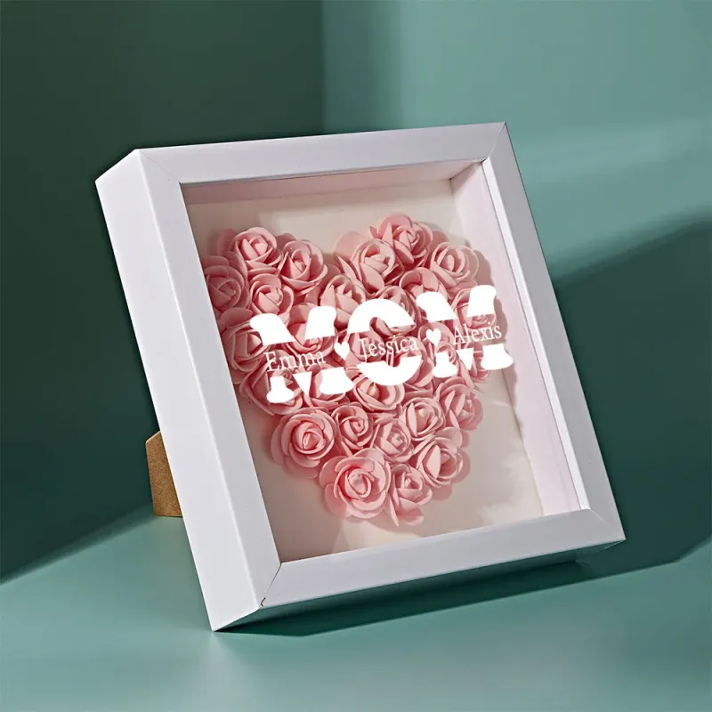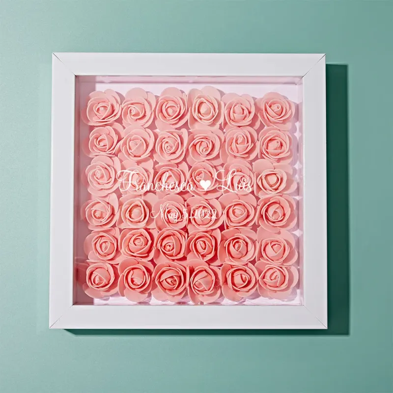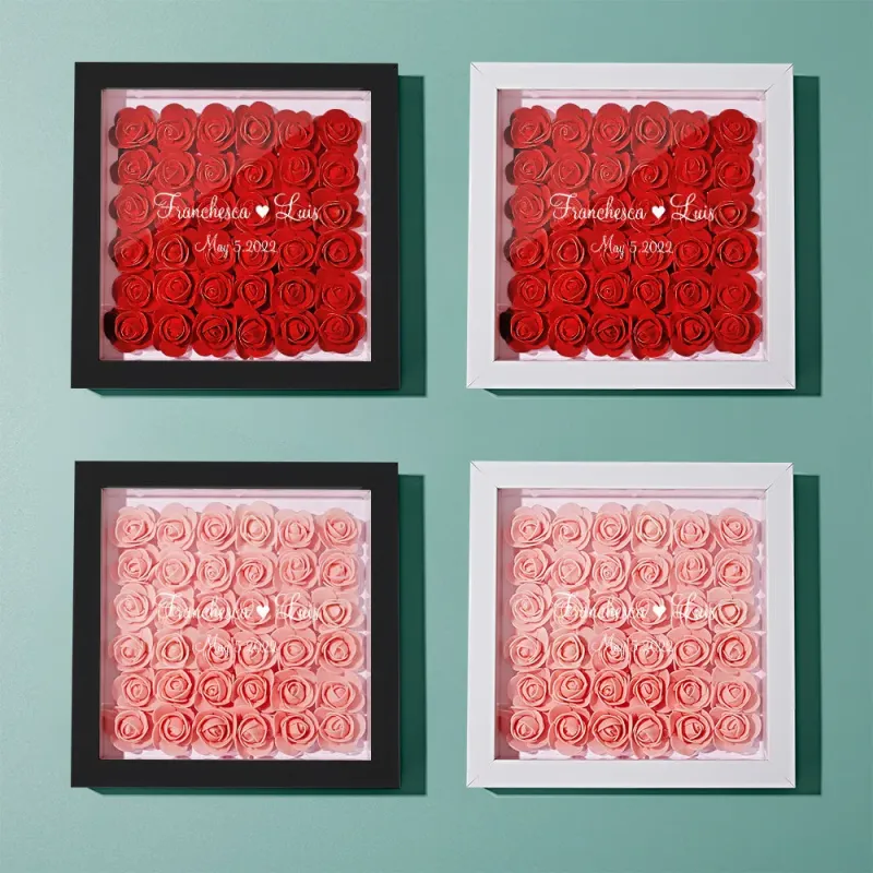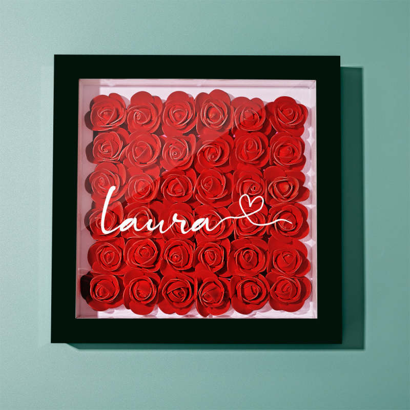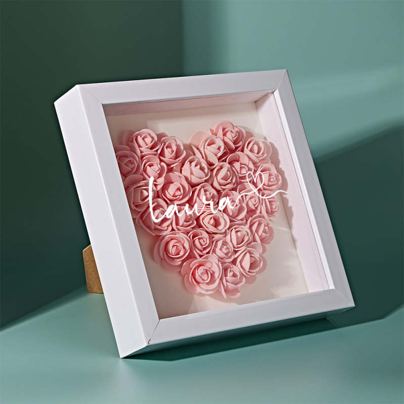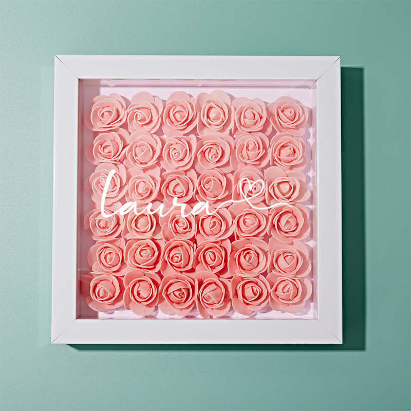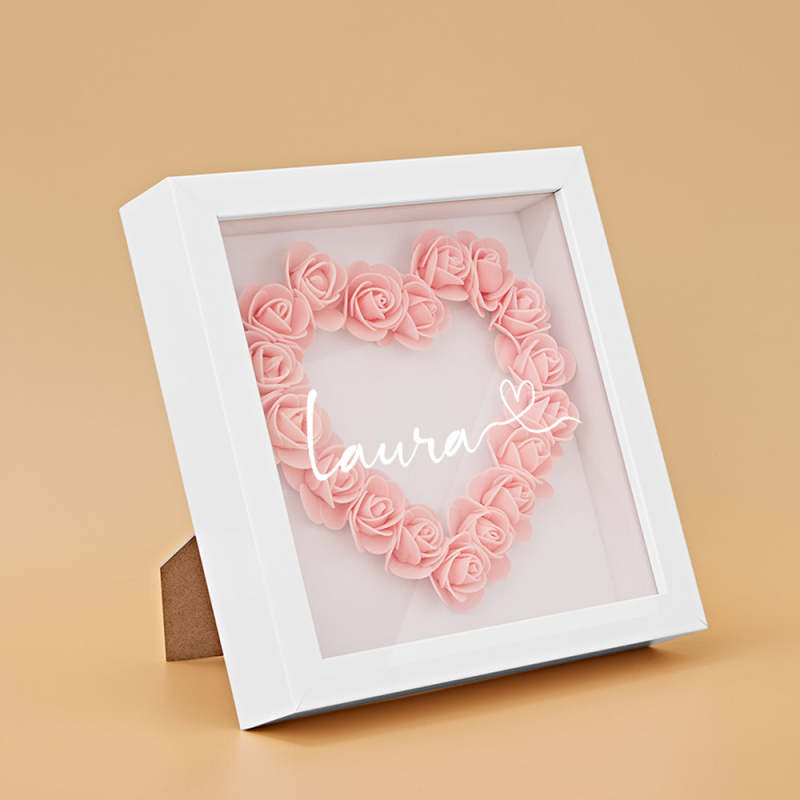 Surprise your loved one with this beautiful, personalized flower shadow box.