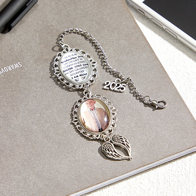 Custom Graduation Tassel Photo Charm with Angel Wings On Your Graduation Day My Heart Is There Gift Memorial Graduation Gift