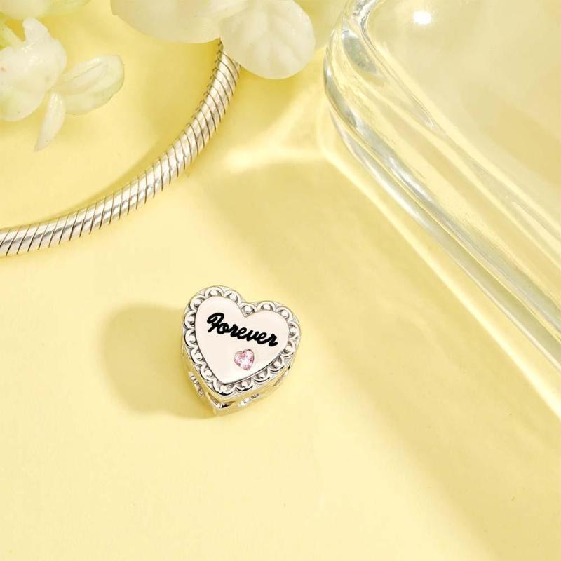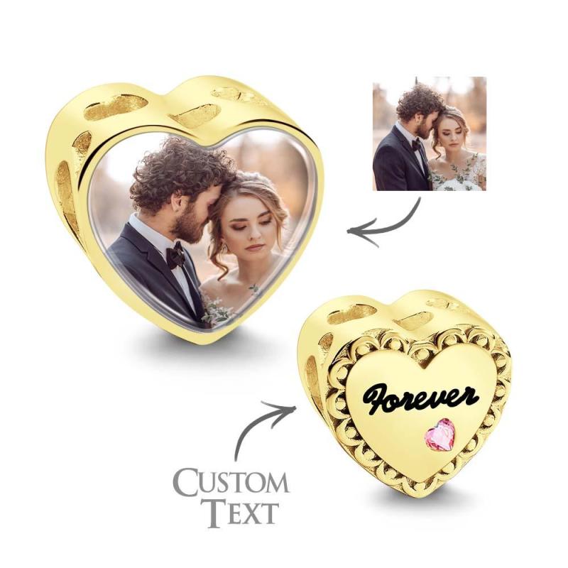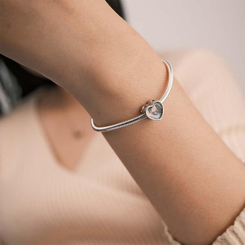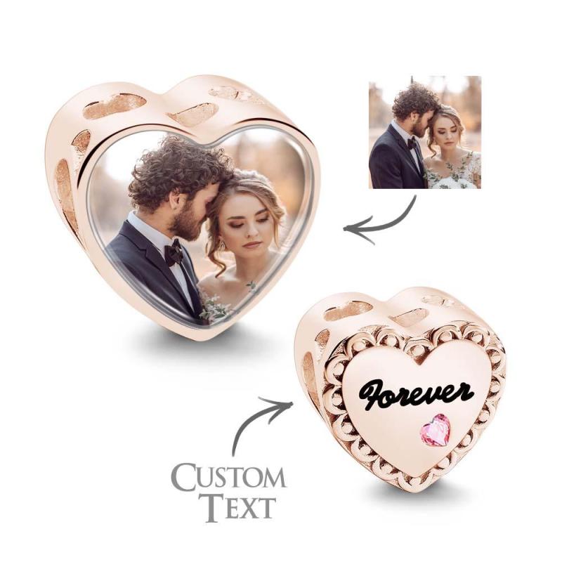 Custom Heart Photo Charm With Pink Zircon Heart Diamond Gifts For Her