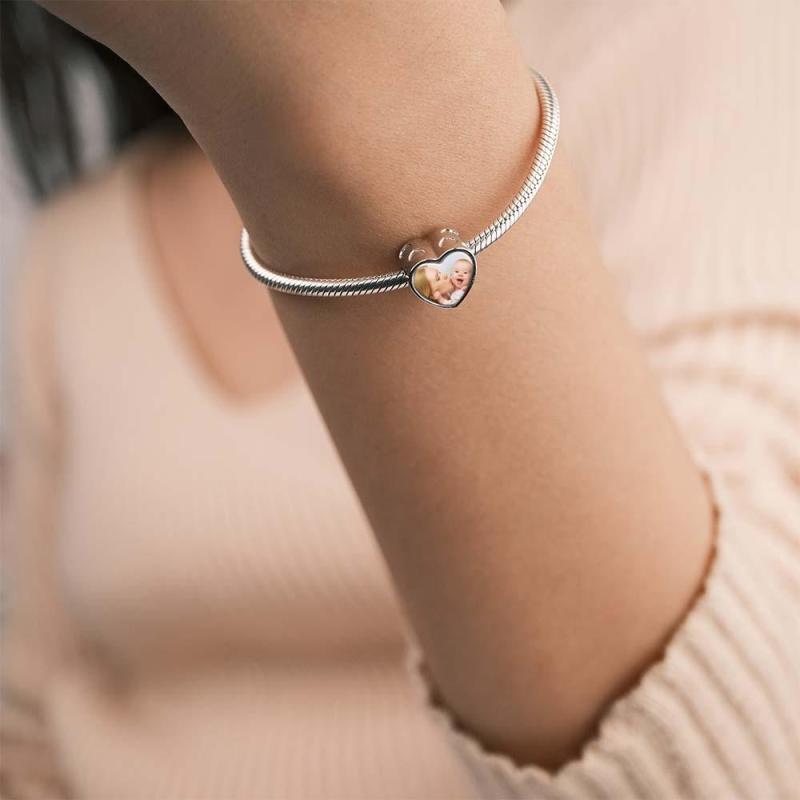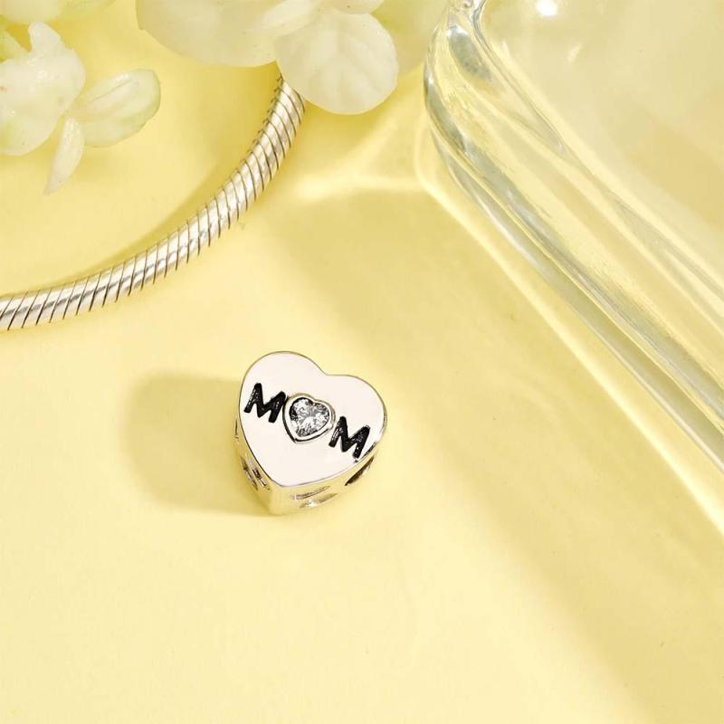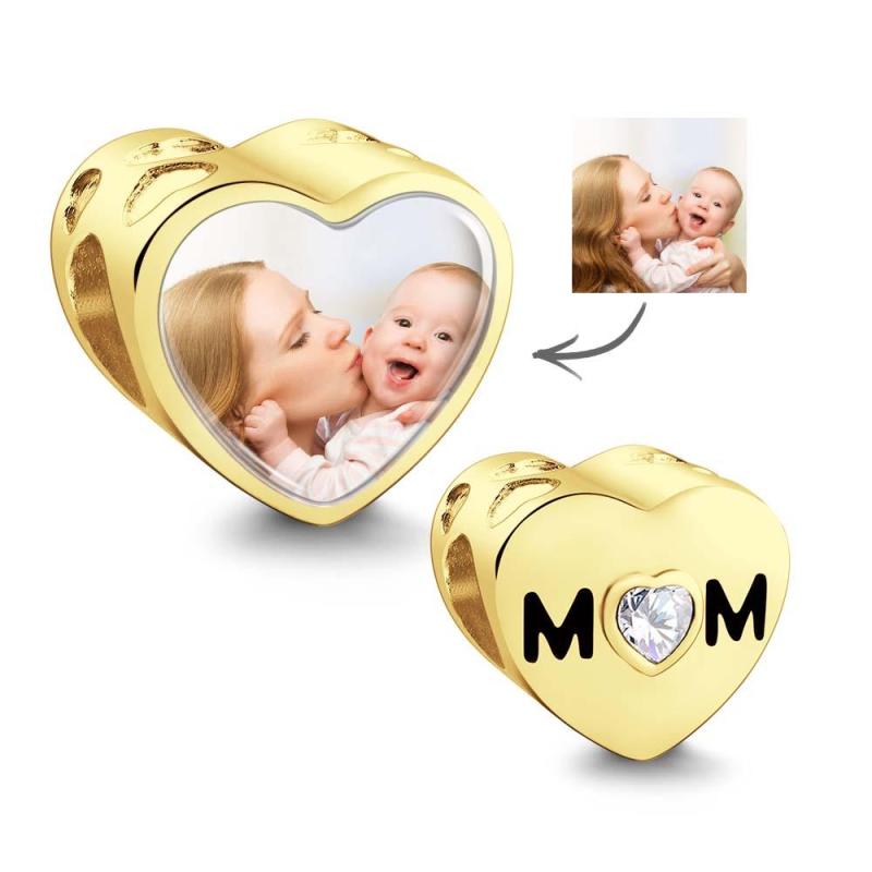 Custom Heart Photo MoM Theme Charm With White Zircon Love Heart Jewellery Mother's Day Gifts