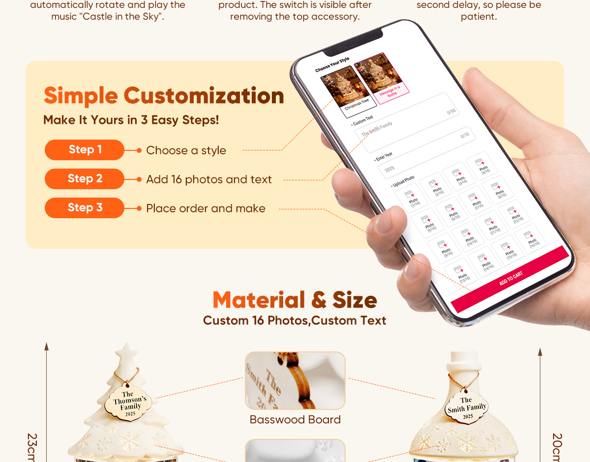 - Upload up to 16 photos: Easily personalize the display with your own photo collection for a truly festive montage.