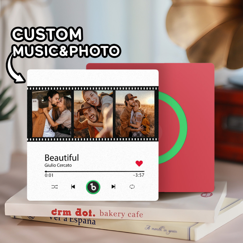 Custom Music Fridge Magnet New 4.0 Upgrade Film Style Colorful Frame Personalised 3 Photo Album Fridge Magnet Music Wall Photo Sticker Music Movement That Can Be Played Christmas Gift