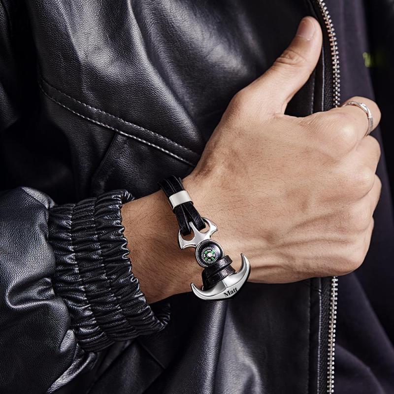 Custom Name Bracelet Anchor Creative Outdoor Sports Compass Leather