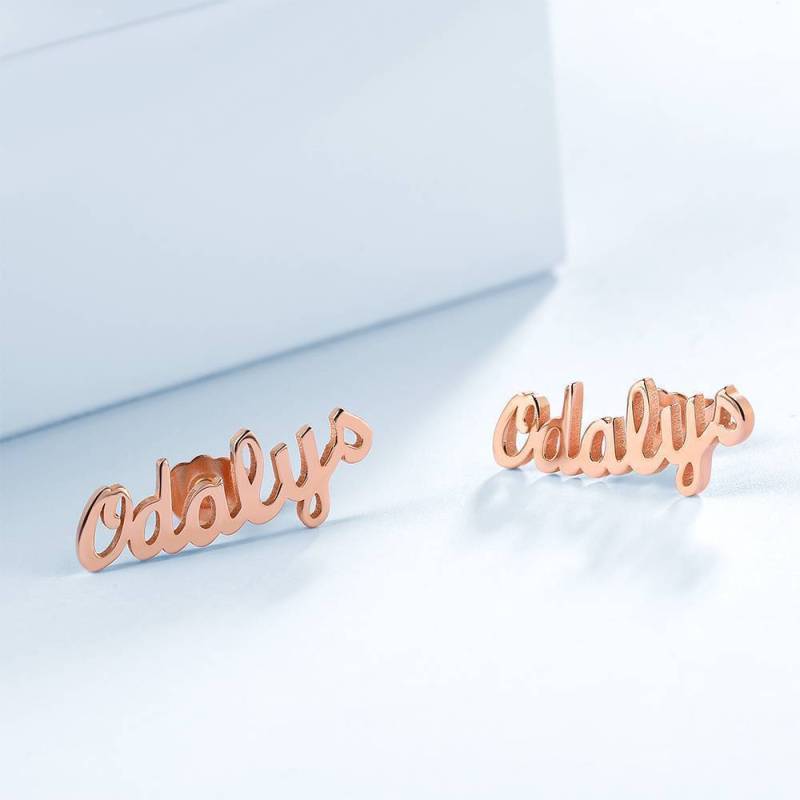 Custom Name Earrings, Name Studs Rose Gold Plated