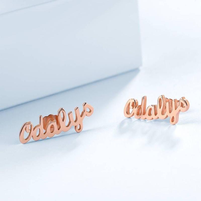 Custom Name Earrings, Name Studs Rose Gold Plated - Silver