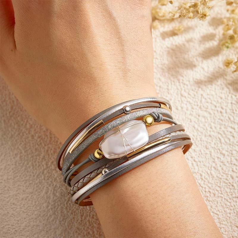 Custom Name Leather Cuff Bracelet Baroque Wrap Bohemian Gift