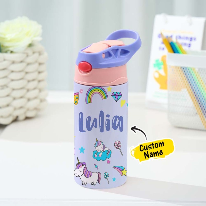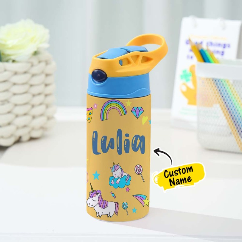 Custom Name Stainless Water Bottle Personalized Name Gift Multi Color Back to School Supplies for Kids