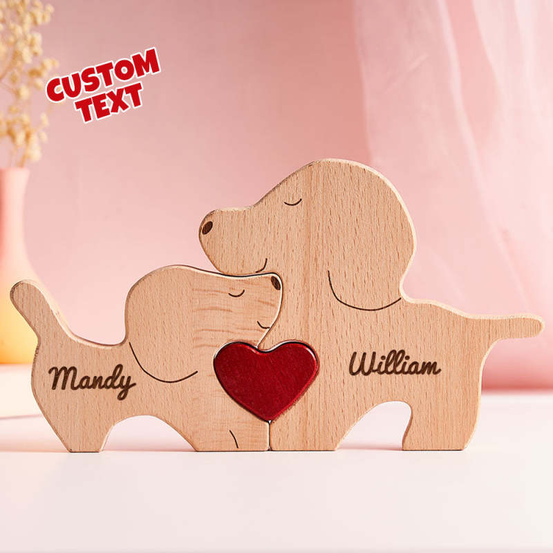Enjoy the unique and beautiful combination of a dog couple crafted from wood and adorned with your custom names! Perfect as a memorable Valentine's Day gift for him or her, these wooden blocks are a delightfully special home decor piece. Love is in the air!