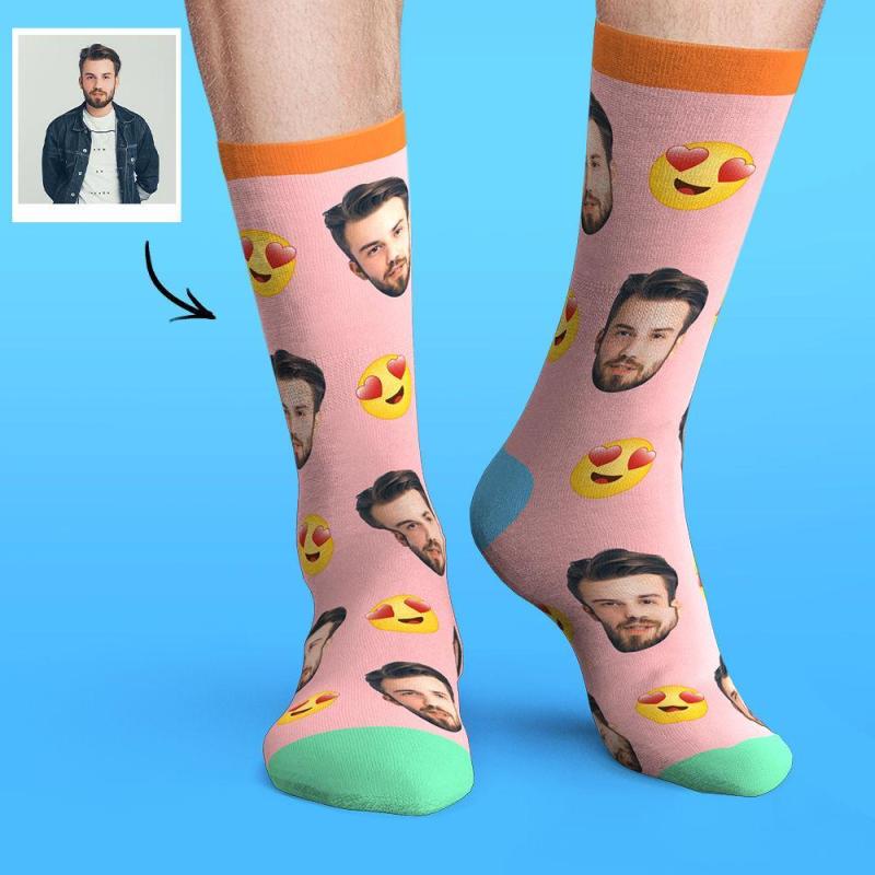 Custom Personalised Photo Funny Emoticons Face Socks-Love