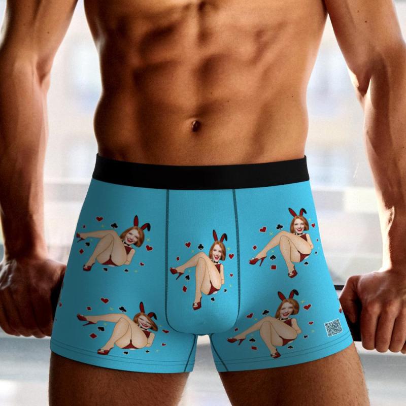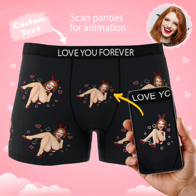 Custom Photo Boxer Bunny Girl Underwear Men's Underwear Gift For Boyfriend AR View Valentine's Day Gift