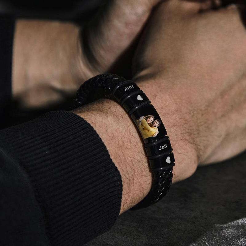 Custom Photo Engraved Bracelet Leather Bracelet Men's Bracelet Gifts for Him