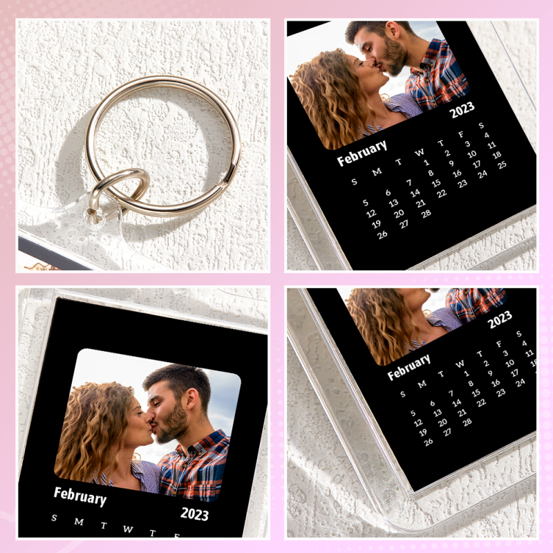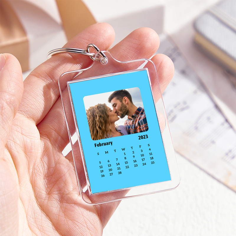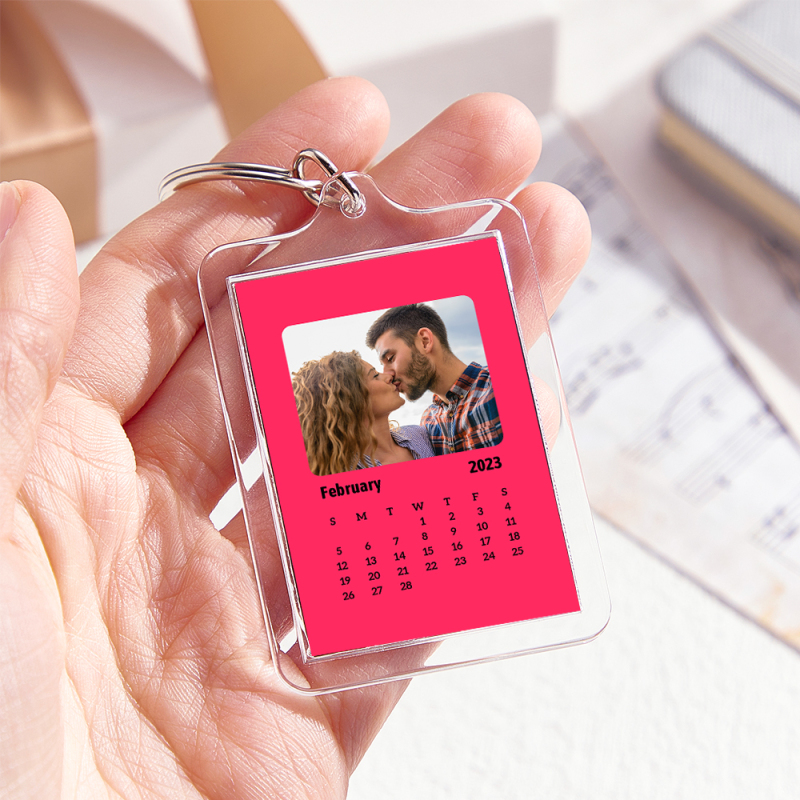 Custom Photo Calender Keychain could help you capture a moment that lasts forever. Personalized photo keychain is designed to provide you with a quick and easy way to create a unique and useful souvenir. The product is made of acrylic and could be engraved the special date. It's an exceptional gift for all ages that is the perfect gift for father's day, wedding anniversary, Christmas, the birth of baby, birthday or any other occasion.