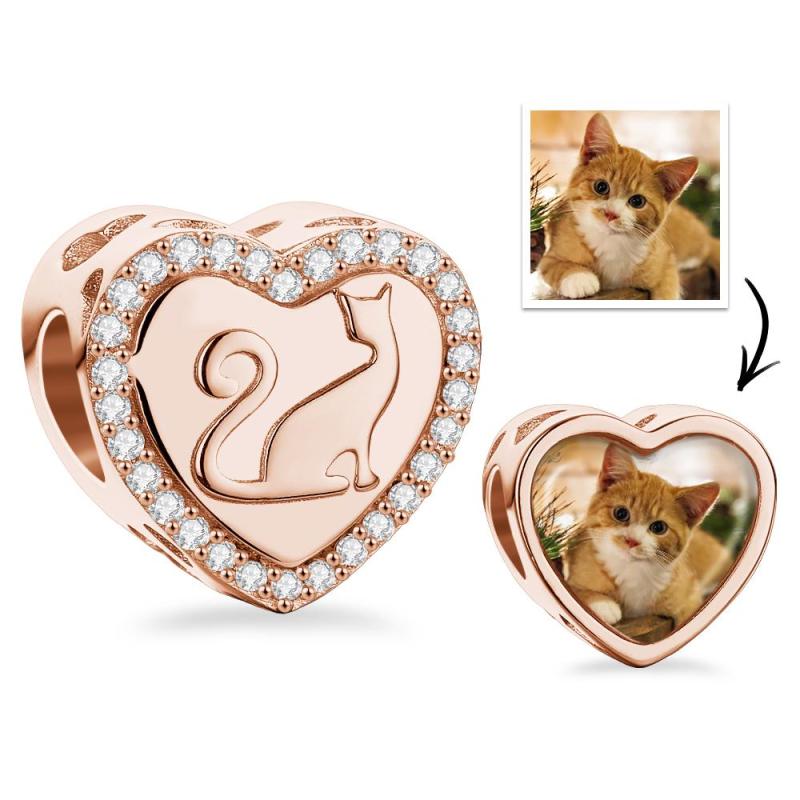Custom Photo Heart Charm Zircon Decor Pet Cat Design Gifts For Pet Lovers