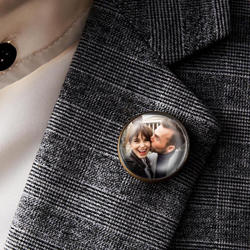 Custom Photo Lapel Pin Vintage Circle Brooch Gift For Man