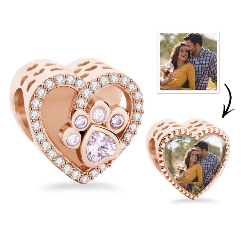 Custom Photo Pawprint Charm Lovely Zircon Pendant Gifts For Pet Lovers