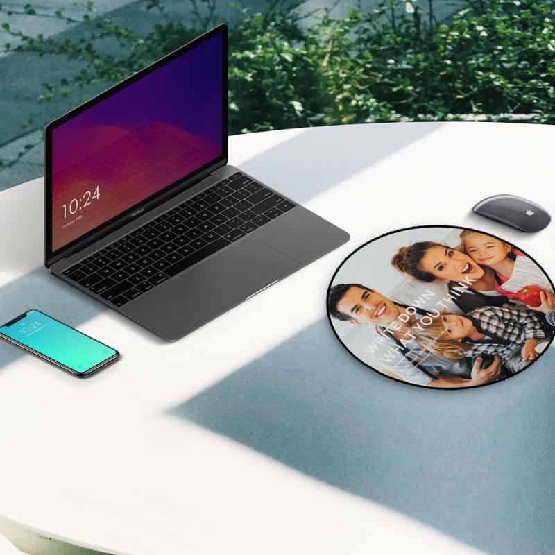 Do you think photos can only be placed in frames? Of course not. Soufeel has come up with more creative ways to show your photos. We can print your photos as posters, paintings, covers of notebooks, or mouse pads. We have so many ways for you to show your favorite photos, maybe this is a photo of yourself or a precious family photo. Just choose your favorite way and send us your photos, soufeel will give you a surprise. And you can give it as a gift to the person you care about on Valentine's day, mother's day, father's day or birthday party. Custom Photo Round Mouse Pad Family Gifts.