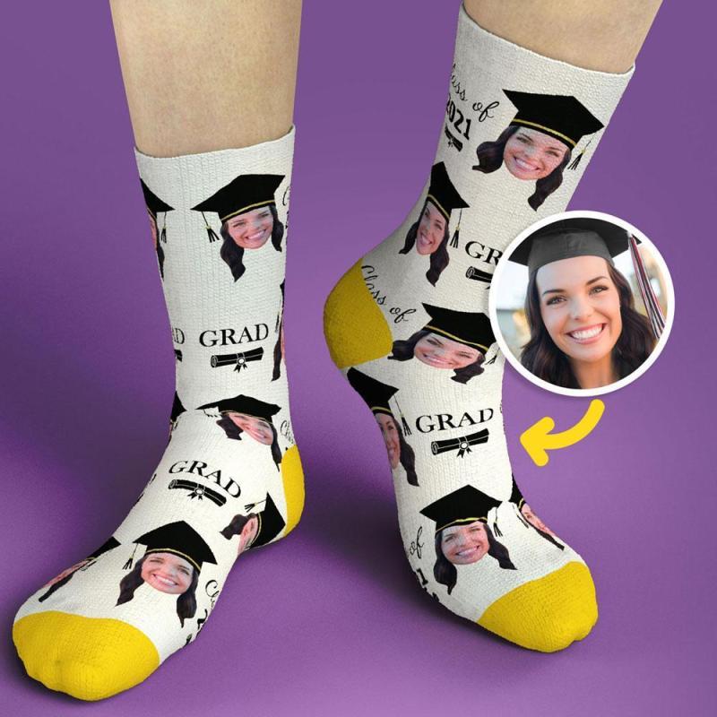 Our custom printed photo socks are the perfect gift for any occasion. You can add any face on socks. They make the perfect gift for anyone! These socks are perfect for any holiday, special occasion or just a funny gift.Custom photo Socks Personalised Printed Socks Graduation Gift for Teacher